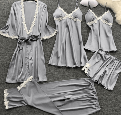 - Style: five-piece silk pajamas set.