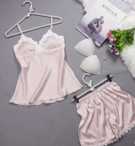 Be at home for the leisure weekends, stay in bed a bit longer or lounge around in these comfy silk pajamas women. It's easy, soft-feeling fit and feminine details make it perfect choice for your hot figure and romantic nights. You will be surprised by its fantastic quality.